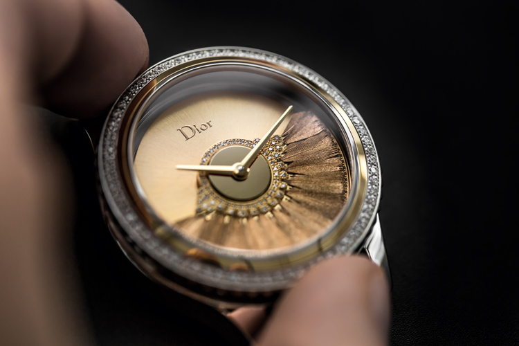 The Dior Grand Bal collection is now enriched with a  new model in 36m, combining the delicacy of a feather with the preciousness of gold. The airy light feathers are covered in gold then set on the oscillating weight next to the diamonds. They evolve in harmony with a sun-brushed golden dial. The Dior Grand Bal Plume is equipped with an automatic movement, exclusive to the Maison Dior, the “Dior Invesé 11 ½’ caliber, featuring a patented and functional oscillating weight recreating the swirl of a ball gown. Combining feather-making know-how, specific to Haute Couture, with watchmaking technology, this model is elaborated with great delicacy, like a feathered petticoat embroidered with gold and diamonds. The Dior Grand Bal Plume is a limited edition of 88 pieces.