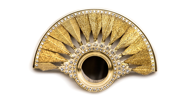 Dior Horlogerie has wished to perpetuate those traditions by offering watchmaking craftsmen the right environment for them to express their know-how in harmony with the Maison’s very essence. This year, the aesthetic and technical signature of the Dior Grand Bal collection, the “Dior Inversé” calibre and its oscillating weight placed on top of the dial, develop some unprecedented feats. Spectacular and elegant, a new Dior Grand Bal Plume displays a cluster of feathers entirely covered in gold. For the occasion, the craftsmen have rolled out a wealth of talents and engineering skills in order to preserve all the organic softness and lightness of the natural duvet on this sunny panache.
