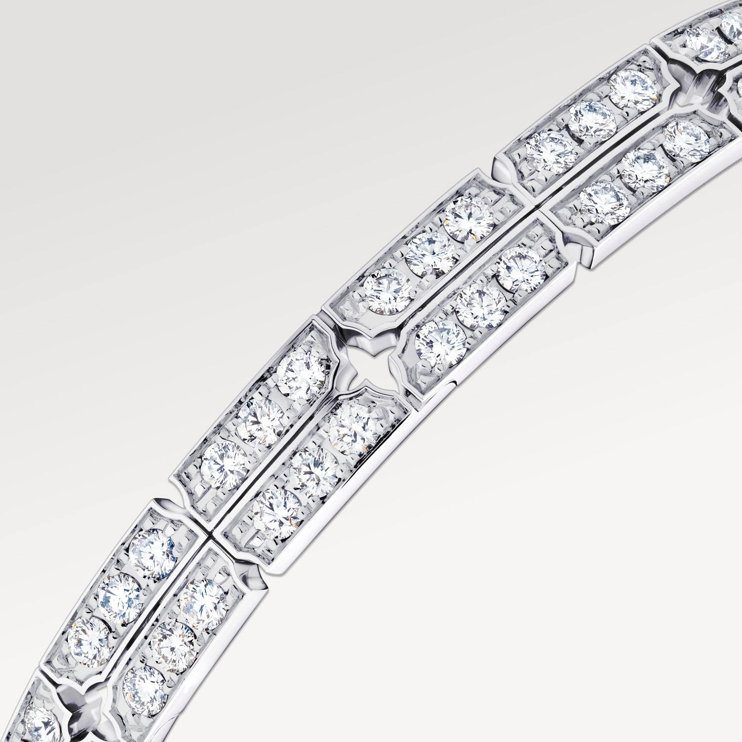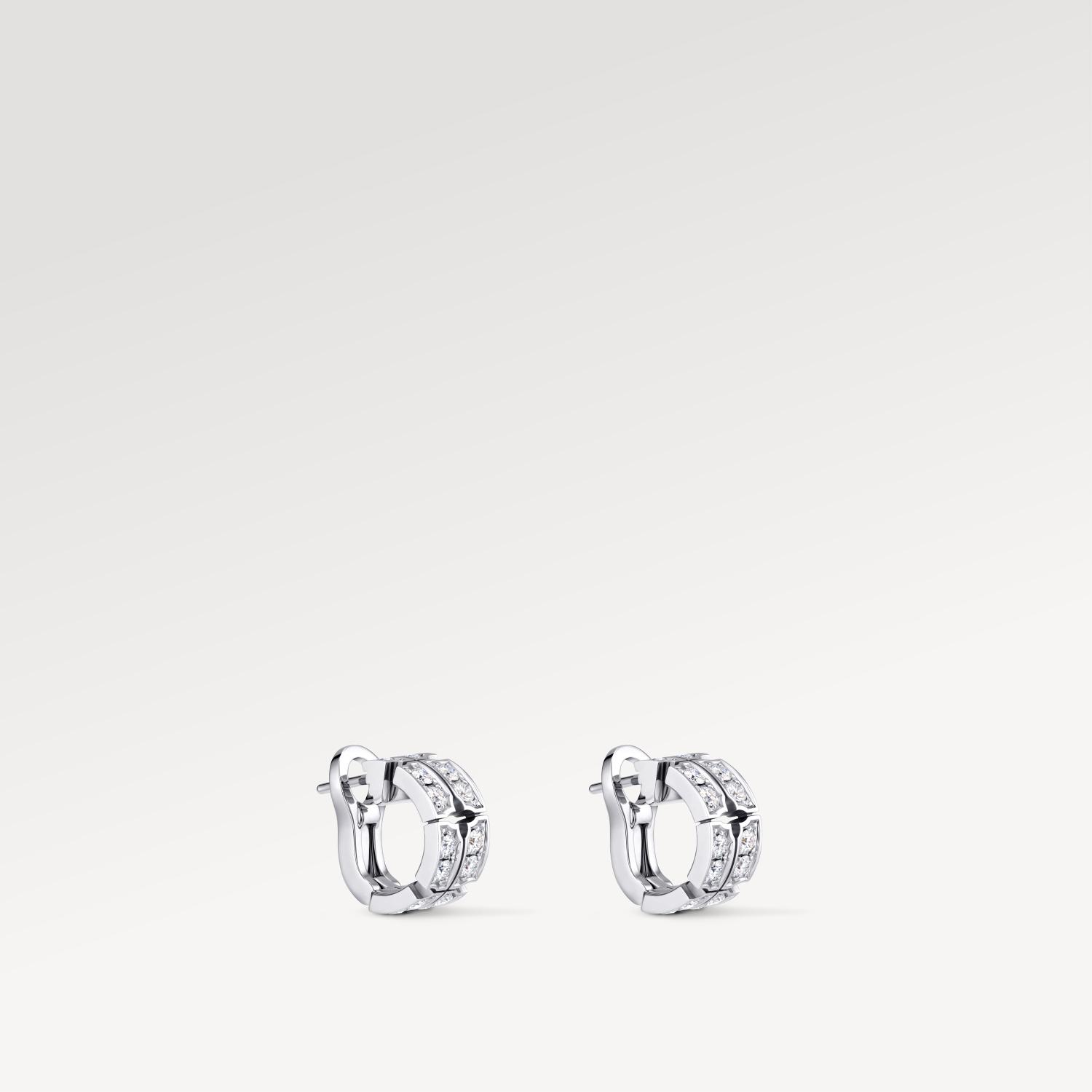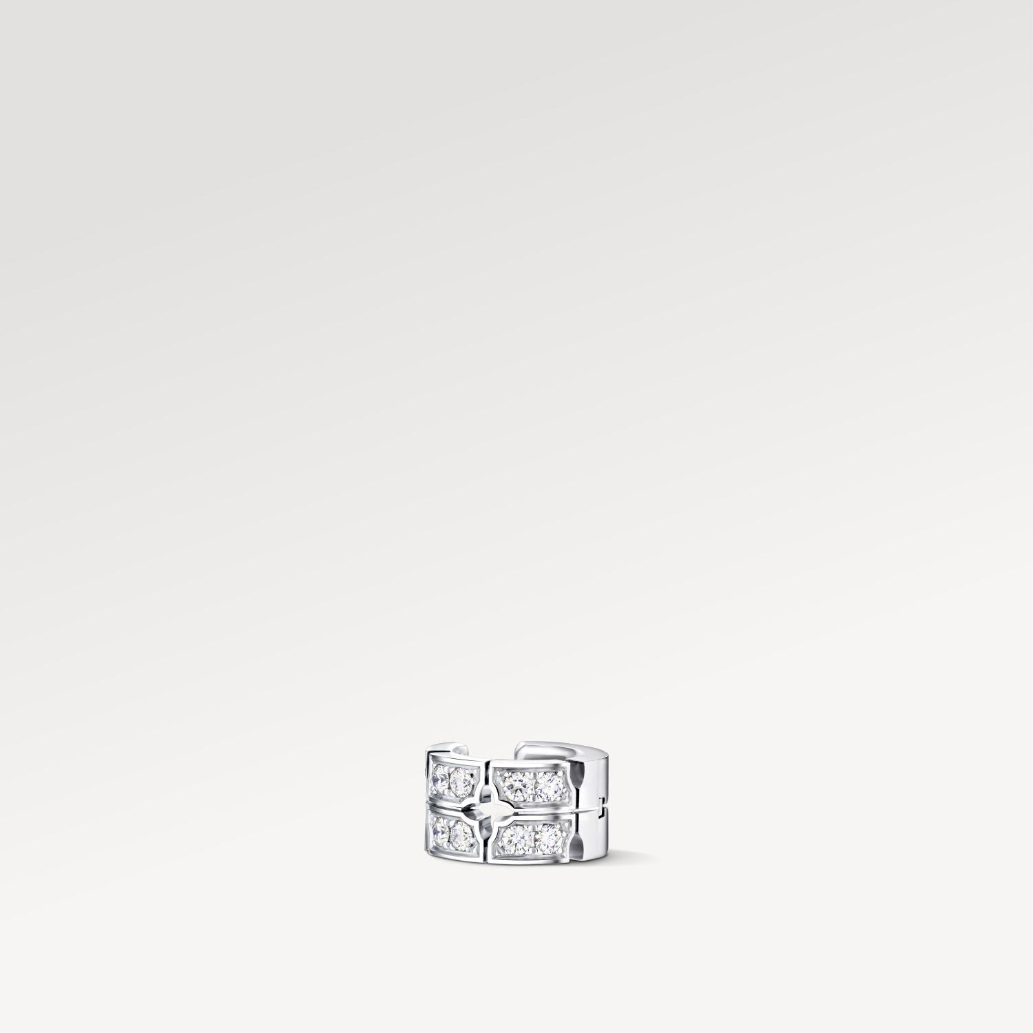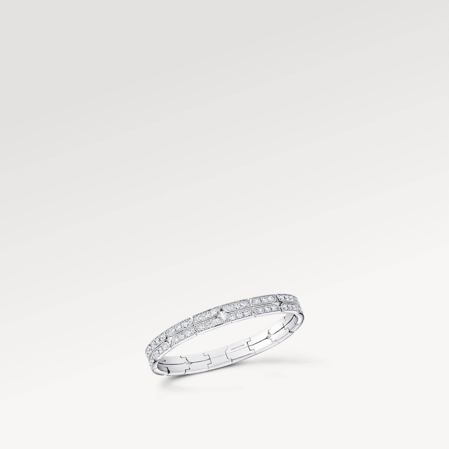 Set in sharp, geometric lines, the theme of white gold and interlocking pavé diamond sequences is energized, as the precious star-shaped Monogram Flower comes to life in an openwork finish.