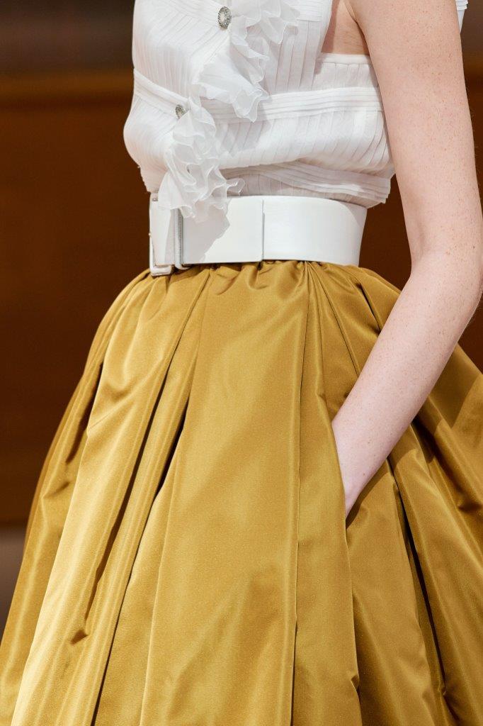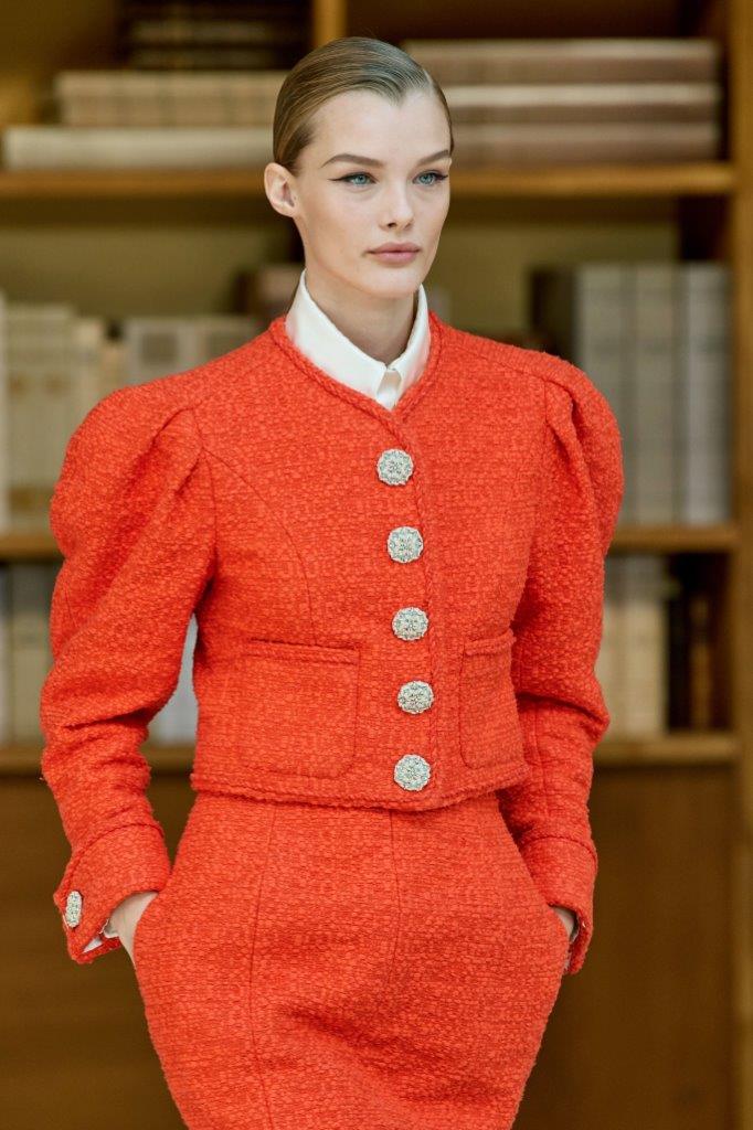 اعتمدت فيارد على الأزرار في اللعب على زخرف التصاميم التي مرّت أولاً فبدت الأزرار نقطة لفت الإنتباه الأولى، بينما تفنّنت في تطويع قماش التويد الذي لطالما اشتهرت به دار شانيل، لاستخدامه في مجموعة كوتور الخريف بأسلوب معاصر ومتطوّر، حيث أحببنا الطريقة التي قدّمته بمختلف أشكال وقطع الأزياء، إن كان عن طريق سترة رسمية، أو تنورة منحوتة، أو سروال جميل بحياكة حرفية ملفتة مع خصر مرتفع ونهايتين واسعتين عند القدمين، أو حتى عن طريق كاب أو معطف طويل مبطّن بلون أحادي.
