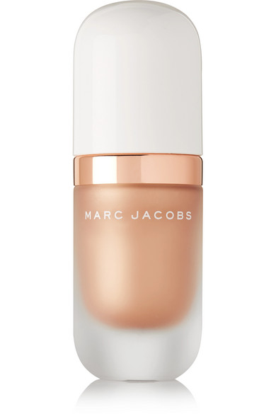 بما أن بشرتك تصبح أكثر جفافاً وتلاحظ عليها التجاعيد أكثر مع تقدمك بالسن كان لا بد من تطبيق المستحضرات ذات التركيبة السائلة بدلاً من تلك الكثيفة القوام، مثل كريم الأساس والكونسيلر ولا تنسي أن تمديها باستخدام الإسفنجة المرطبة بشكل كافٍ لتندمج المستحضرات مع البشرة وتغطي عيوبها. ولمزيد من الحيوية والنضارة أغرقي بشرتك بكريم التطريب قبل المكياج، أحببنا سائل الهايلاتر من مارك جاكوبس Dew Drops Coconut Gel Highlighter .