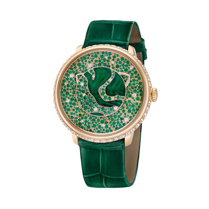 ساعة Lady Libertine تتألق بحجر الزمرد المنحوت يدوياً