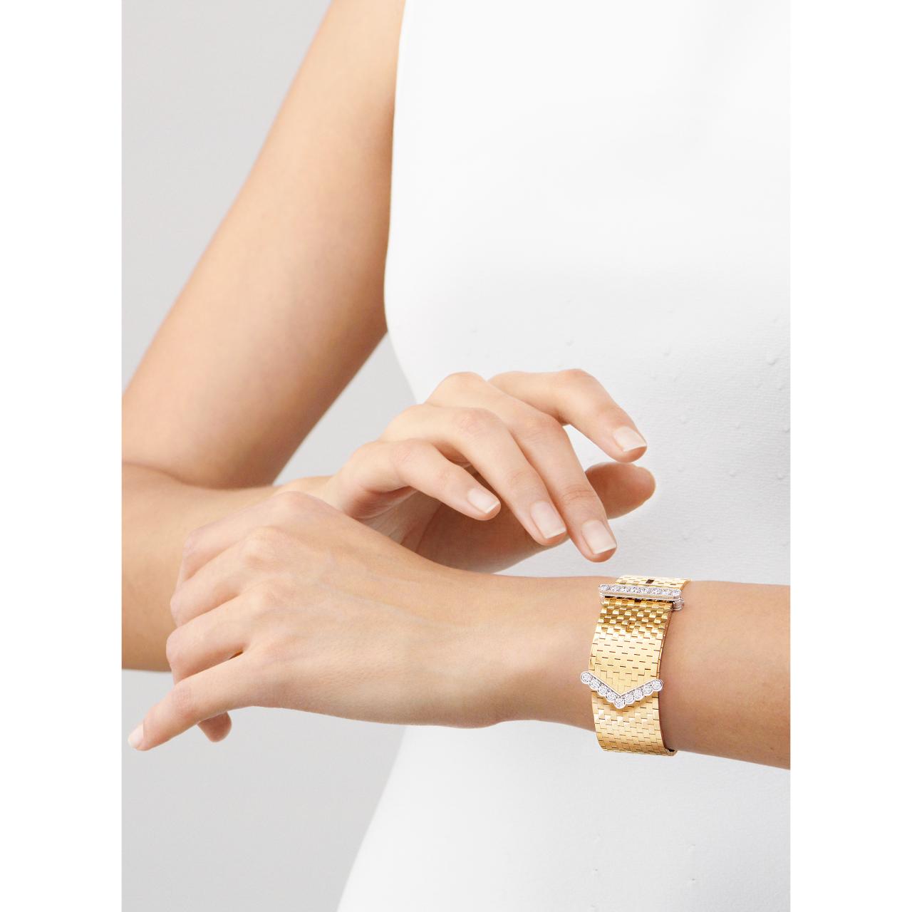 فيلتقي أسلوب ثلاثينيات القرن الماضي المجرّد بعالم الأزياء الراقية العزيز على قلب الدار. وبفضل البراعة المتفوّقة للخبراء في محترفات دار فان كليف أند آربلز، يتسم الذهب بالخفة والمرونة ويتزيّن بتفاصيل ثمينة خلّابة.