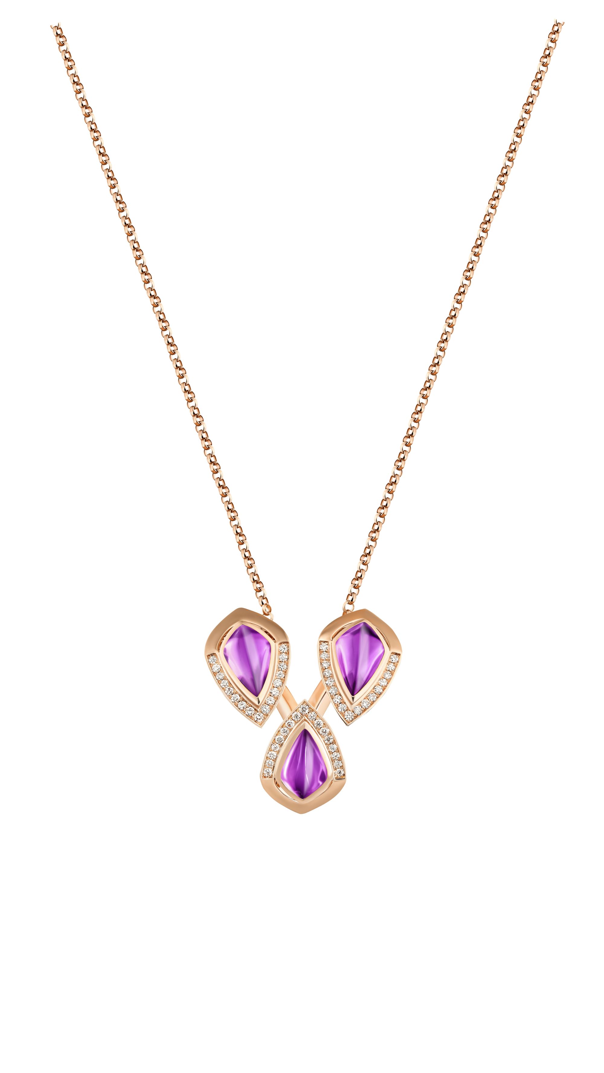 تقدم الدار المرموقة ثلاث قلائد من الماس وتتيح السلاسل ذات الأطوال المختلفة مع كل واحدة من القلائد الثلاث ارتداء هذه الابتكارات الثلاثة بشكل فردي، أو مع بعضها لخلق تأثير بديع من عدة طبقات يشكّل جمالية رائعة لكل يوم. وتماشيا مع بقية المجموعة، تم صنع زوجين من الأقراط. أحدهما عبارة عن زوج من الأزرار الماسية مع ما يسمى “جاكيت الأذن” بحيث تظهر أشعة الماس وكأنها تطفو. والثاني هو زوج من الأزرار مع أشعة من الماس والذهب الأبيض معلقة على سلاسل بحيث تتدلى الشمس المزخرفة بأناقة، متحركة بلطف مع كل حركة.