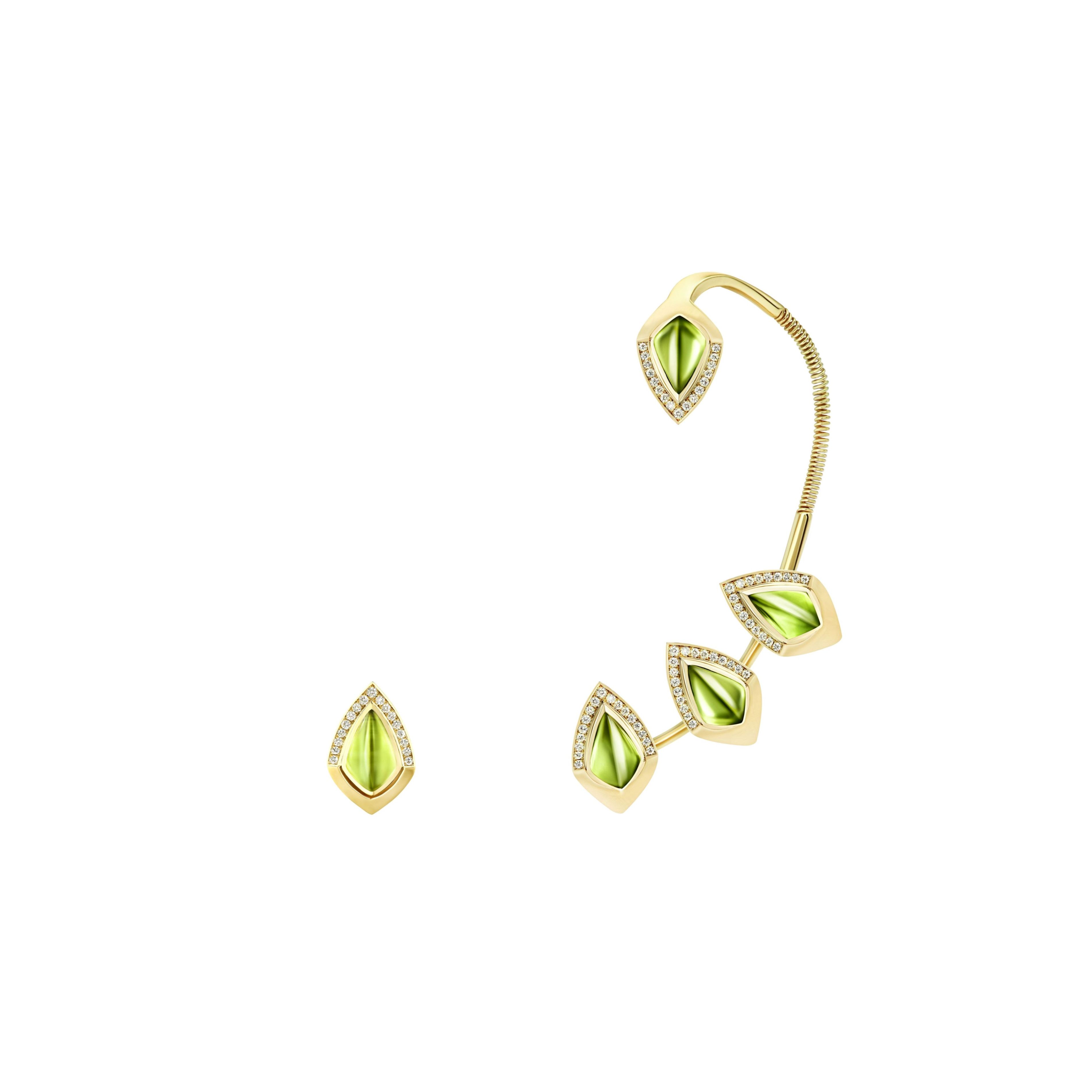 كل قطعة مصمّمة يدوياً من الذهب وأجود أنواع الألماس، ومرصّعة بأحجار نفيسة تتميّز بقصّتها وشكلها.