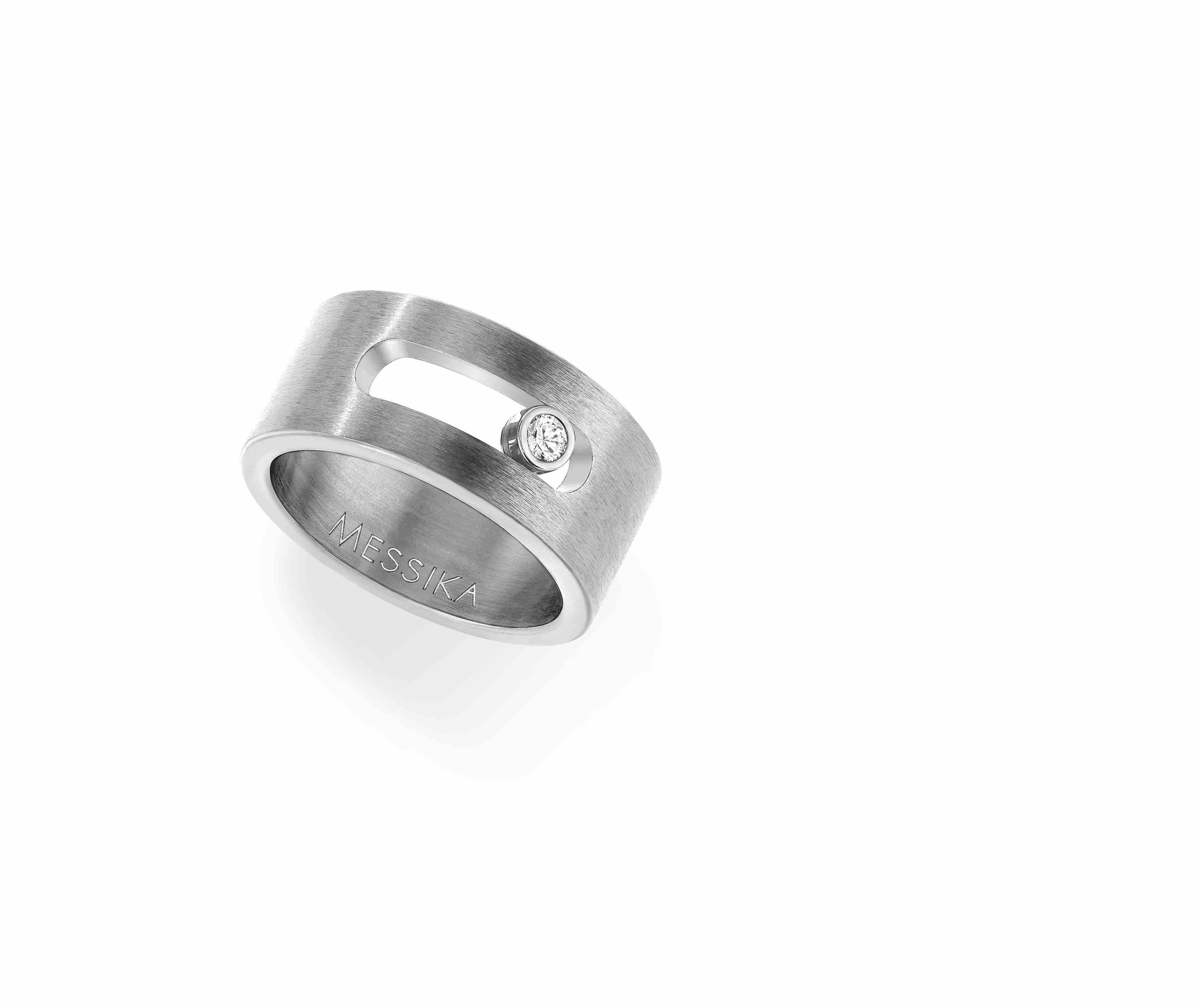 حيث ابتكرت ميسيكا خواتم وأساور وأزرار لأكمام القمصان مصمّمة من التيتانيوم، ولا يتعدّى وزنها بضع غرامات. تتجلّى انسيابيّة الماس في تصاميم تشمل ثلاث ماسات عائمة، يمكن أن يرتديها الرجل كل يوم. وإليكم تفاصيل المجوهرات: