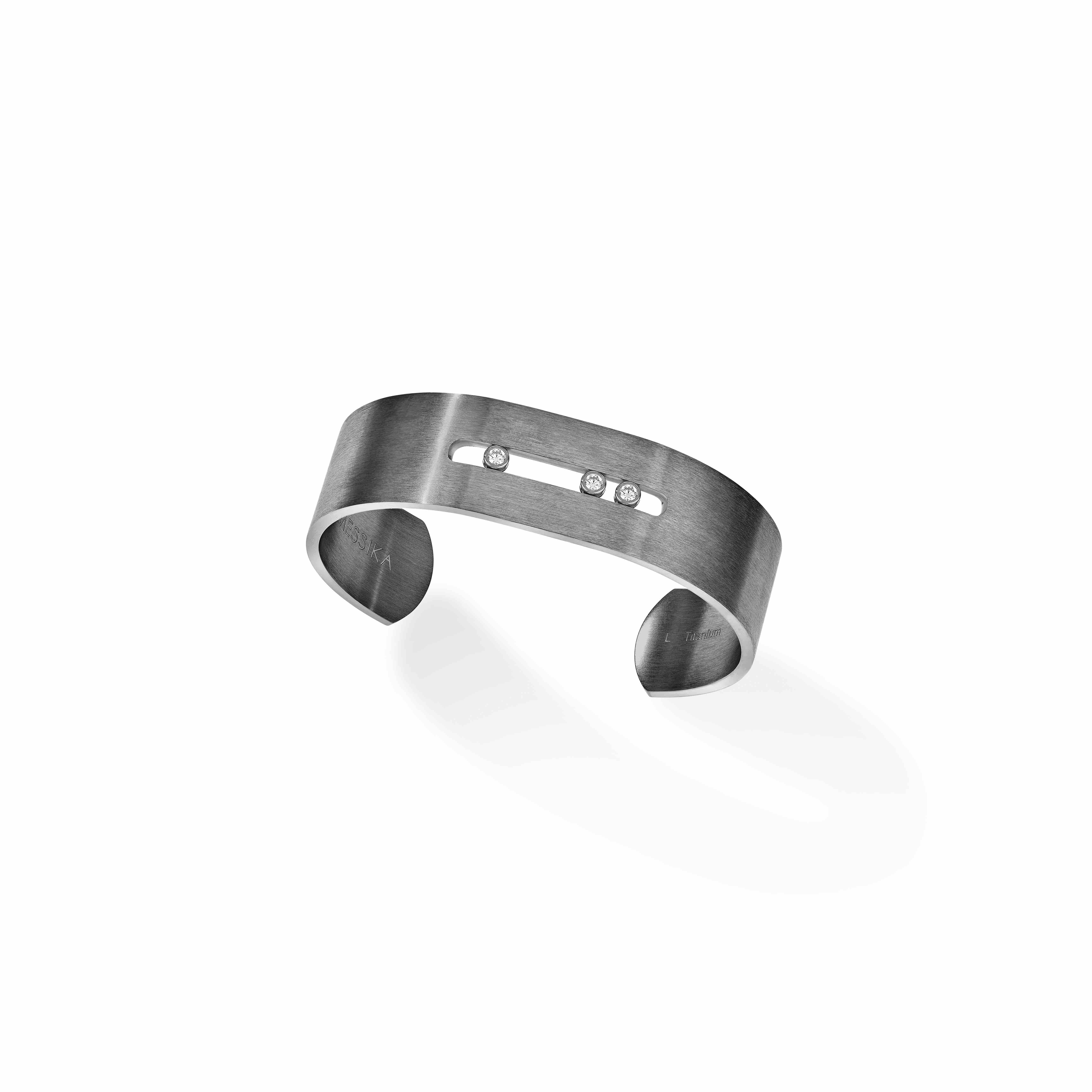 سوار بسيط من التيتانيوم، يزداد رونقاً بفضل ثلاث ألماسات متحرّكة وحواف مطليّة. تقترن أناقة هذه الأساور بقيم علامة ميسيكا، ألا وهي الراحة والخفّة والحركة. يمكن تنسيق هذه التصاميم خفيفة الوزن بسهولة مع ساعة أو مع أساور أخرى.