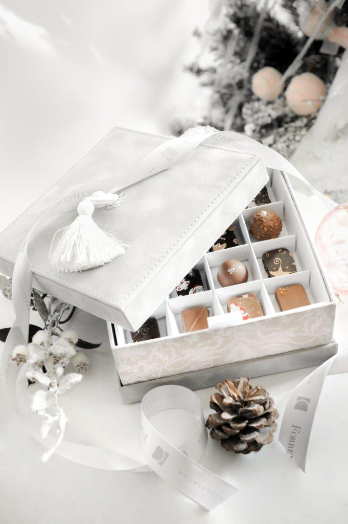 من لا يحب الشوكولا؟ فهي عشيق اكبار والصغار، الرجال والنساء، يمكنكم وضع علب الشوكولا كزينة على الشجرة، أو أسفلها. أو تقديمها كهدايا آخر الحفل، أو كتحلية بعد العشاء. الاهتمام بشكل علب الشوكولا له تأثير كبير على تنسيق الحفل إن كان في المنزل أو في مكان مخصص.