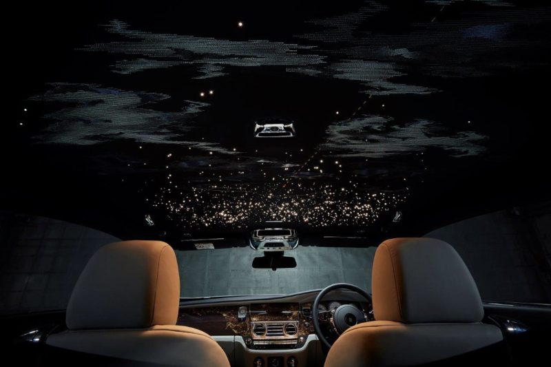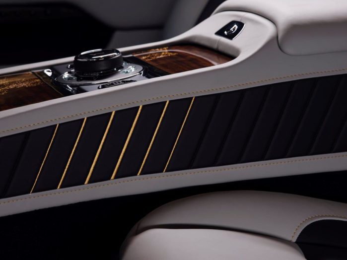 في الداخل، تعكس المقصورة الداخلية المنفذة بدقة اللون الخارجي. تم تشكيل Selby Gray وجلد أسود من النحاس الأصفر، وهو جزء لا يتجزأ من نجاح الرحلة عبر الأطلسي. تُنفَّذ المادة بأسلوب معاصر، وتغطي المناطق الرئيسية في جميع أنحاء قمرة القيادة في المجموعة. تغطي أغطية السماعات النحاسية مسافة الرحلة المقدرة التي تبلغ 1.880 ميلًا ، وتُطرز أعمدة “RR” في خيط نحاسي اللون على مساند الرأس. ومضة من النحاس تكمل واجهة باب الملاح، في حين أن باب السائق يتضمن لوحة من النحاس الأصفر مع اقتباس لتشرشل يشيد بإنجازات الثنائي الرائعة.