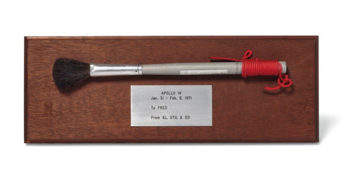 وتشمل القطع الأخرى المعروضة في المزاد علماً كبيراً للولايات المتحدة حُمل على متن “أبولو 10” (سعره التقديري: 25,000 – 35,000 دولار)، وفرشاة لتنظيف عدسات الكاميرات المستخدمة على سطح القمر أثناء بعثة “أبولو 14″، التي استمرت من 31 يناير وحتى 9 فبراير 1971 (سعرها التقديري: 125,000 – 175,000 دولار)، ومخطّط كبير لسطح القمر يرجع تاريخه إلى مايو 1971 (سعره التقديري: 40,000 – 60,000 دولار). ويُظهر الرسم البياني تفاصيل وضعها عضو من كل طاقم من الأطقم التي هبطت على سطح القمر ضمن برنامج “أبولو”، وهو المثال الأبرز من نوعه الذي تمّ إنتاجه لوكالة الفضاء الأمريكية “ناسا” خلال البرنامج.