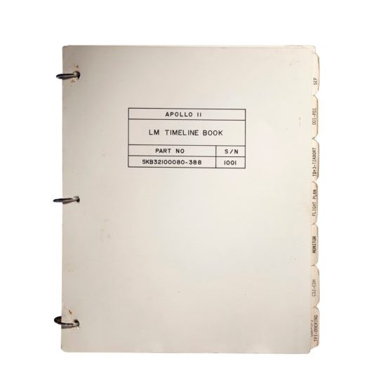ويشتمل المزاد على كتاب مُدوّنٍ فيه الجدول الزمني لوحدة أبولو 11 القمرية، ويُعدّ أبرز ما يتضمّنه هذا المزاد، وكان استخدمه نيل أرمسترونغ وبَز ألدرين للتنقل في المركبة على سطح القمر بعد هبوطهما عليه في شهر يوليو من العام 1969. ويُقدّر سعر الكتاب بما يتراوح بين سبعة وتسعة ملايين دولار.