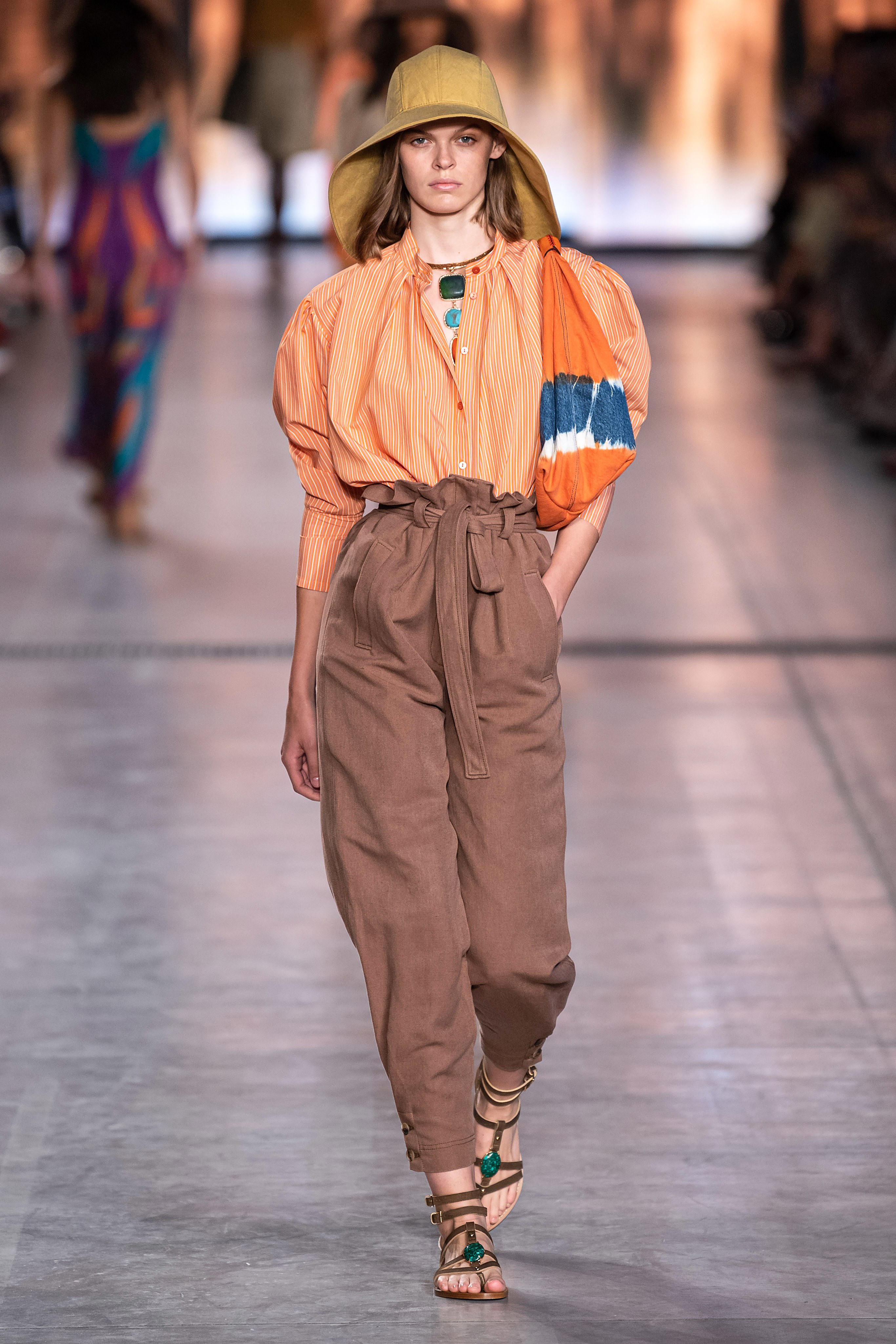 في مجموعة ربيع وصيف 2020 في ميلانو بدت تحمل طابعاً رشيقاً وإدخالات فاخرة من الملابس والأزياء، إن كان من ناحية لمحات الألوان البرتقالية والدافئة التي دخلت في بداية العرض وانتهت بالألوان الباردة، أو مزيج أقمشة الشاموا وجلد الغزال الملوّنة مع تطريزات الكروشيه المرحة.