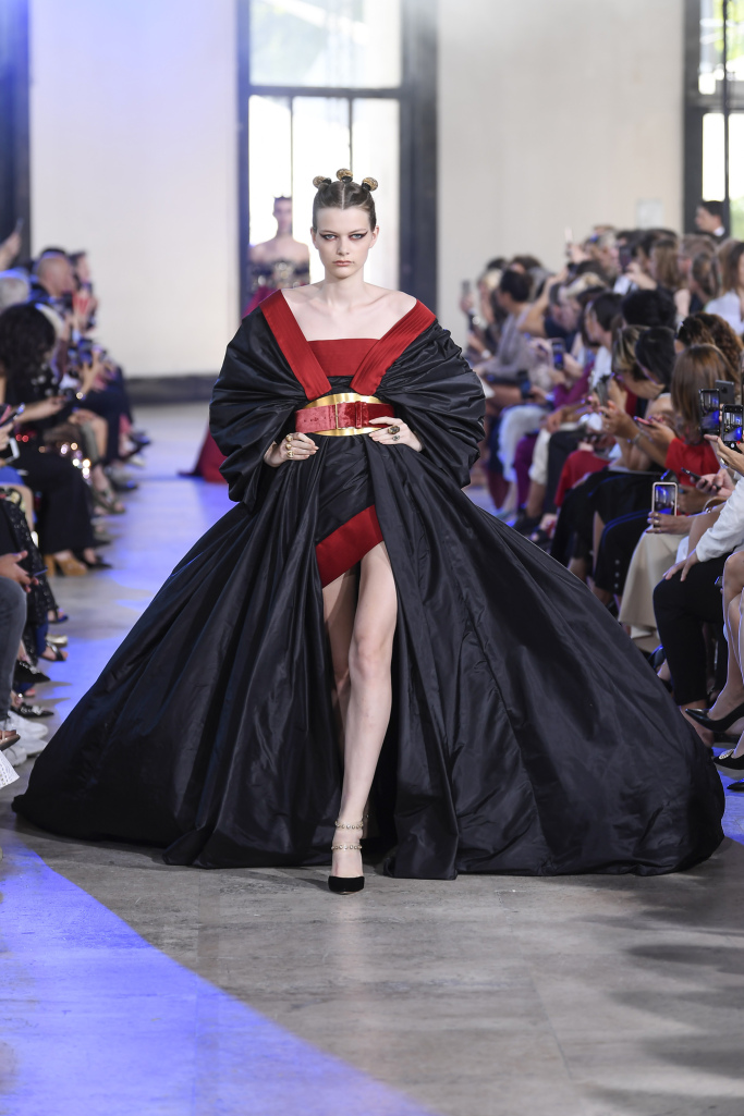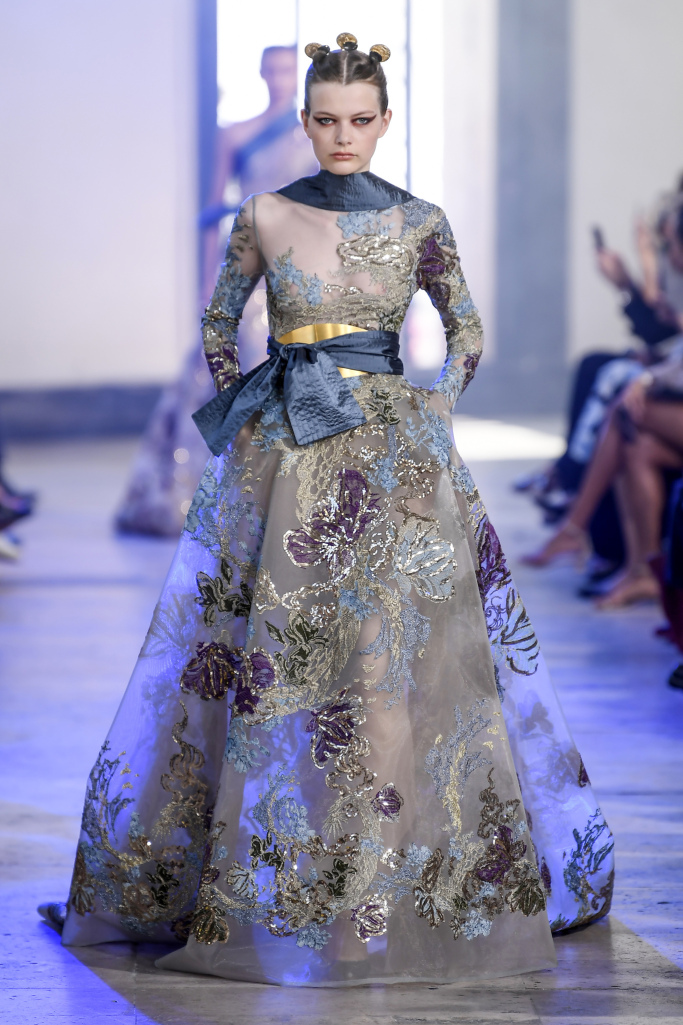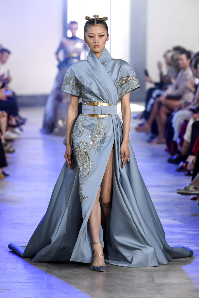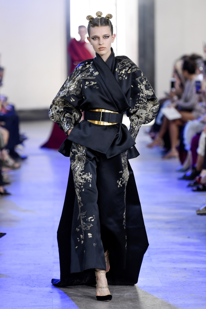 من الحبر الصيني إلى الرسومات والزخارف المرسومة برفق على الأوراق التقليدية وصولاً إلى القماش الحريري الشهير لدى منطقة الشرق الأقصى كلّها عناصر اجتمعت بقوّة في هذه المجموعة التي حافظت على أبعاد أسلوب إيلي صعب في التصميم وإظهار الرسومات الظلّية لجسد المرأة بكل أنوثة وجاذبية حتمية.