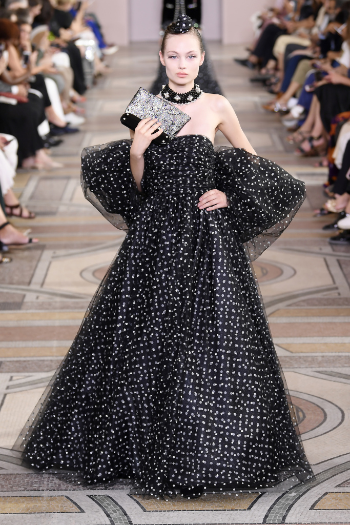 أحببنا أيضاً الأقمشة الشبك الشفّافة التي ارتدتها العارضات على شكل توبات وقمصان بأكمام عريضة تنتهي بالكشكش وهو مزيج لم يسبق لنا أن رأيناه على أزياء من الكوتور من قبل.