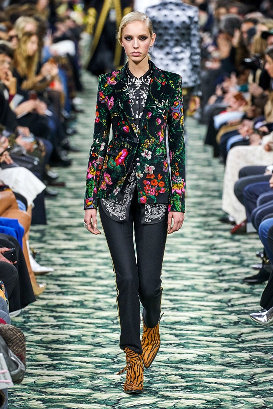 ضمن مجموعة باكو رابان لفتتنا بداية الرسومات الظلية للعارضات، أنثوية، قوّية وواثقة، بينما عبّرت الإطلالات الجمالية بأحمر الشفاه البرغندي بالإثارة والجرأة. في حين تمازجت وتعدد النقشات التي استلهما المصمم من جلود الحيوانات كالنمر والفهد والأفعى، ومن أحضان الطبيعة الغنّاء بلونها الأخضر وأزهارها الملوّنة بالأحمر والزهري.