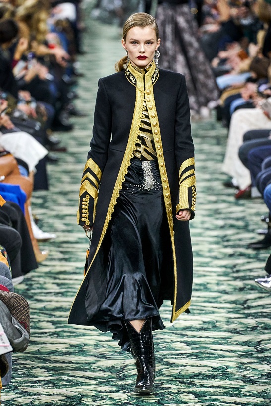 رصدنا الكثير من السترات المطرّزة بخيوط الذهب بأسلوب عسكري بخطوط مستقيمة وهندسية، بينما تفوّقت الأكسسوارات على بعض قطع الأزياء، من حيث صناعتها وتنسيقها، حيث أحببنا الأقراط المنسدلة كالثريا الكثيفة، وأعجبتنا الحقائب بالأحزمة المعدنية على شكل سلاسل رفيعة من ألوان الفضة، بينما لفتت أنظارنا البروشات الفضيّة المرصعة بالكريستال والتي شبكت على القمصان. إضافة إلى أكسسوار الشعر كمشبك الشعر الفضيّ الكلاسيكي وسلاسل رأس لخط فرق الرأس.