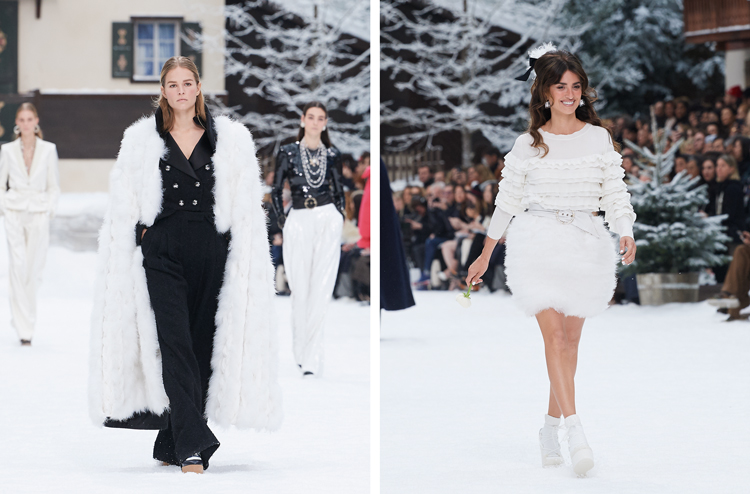 سادت لحظات الخريف والشتاء بحزنها على أجواء قاعة الحفل في Grand Palais الذي تحوّل إلى منتجع من الشاليهات الشتوية على إحدى سفوح جبال الألب المغطاة بالثلوج، ليحتضن مجموعة شانيل لخريف وشتاء 2019-2020، ضمن ديكور ولوحات آسرة فيها الكثير من البهجة، رغم شعور الأسى لدى الحضور بوداع مدير الدار الإبداعي، كارل لاغرفيلد، الذي رحل في 19 فبراير الماضي. هذه المجموعة هي الأخيرة التي وضع عليها لاغرفيلد بصمته قبل وفاته، لذا كانت عزيزة على قلب من أحب عمله، وشهد أعماله الخارجة عن المألوف، بإبداعاتها وتفرّدها. كان هذا العرض مرتقباً من الجميع، فقد وصفه أحد الحضور أنه “بمثابة جنازة ثانية للاغرفيلد ولكن بالأسلوب الذي يحبه”. وكأنها نهاية رحلة بدأها لاغرفيلد حين أكمل رحلة غابريال شانيل، ليسلم الشعلة إلى فيرجيني فيارد، التي اعتبرها لاغرفيلد بأنها يده اليمنى منذ عام 1987. بدأ العرض بدقيقة صمت وقفت خلالها العارضات بأزيائهن على سلالم الشاليهات الريفية، وبعدها افتتحت كارا ديليفين العرض بأزياء شتوية سميكة مزيّنة بنقشات Houndstooth الكلاسيكية بأحجام متنوعة. لطالما عرفت كارا بأنها صديقة للدار ووجها الإعلامي لسنوات عديدة، إلى أن استقالت من عملها كعارضة أزياء. إلا أنها عادت في العرض الأخير لتقدّم تحية للاغرفيلد. كما قدّمت أيضاً الممثلة اللاتينية بينيلوبي كروز تحيّتها إلى كارل، حين مشت على منصّة الأزياء في نهاية العرض، وهي ترتدي إطلالة بيضاء كفستان زفاف، مع تنّورة “كرة الثلج” المزيّنة بالفراء، وتوب من الكشكش الأبيض والدانتيل. الجدير بالذكر أن شانيل كانت قد عيّنت بينيلوبي كروز سفيرة جديدة للدار في صيف العام الماضي.