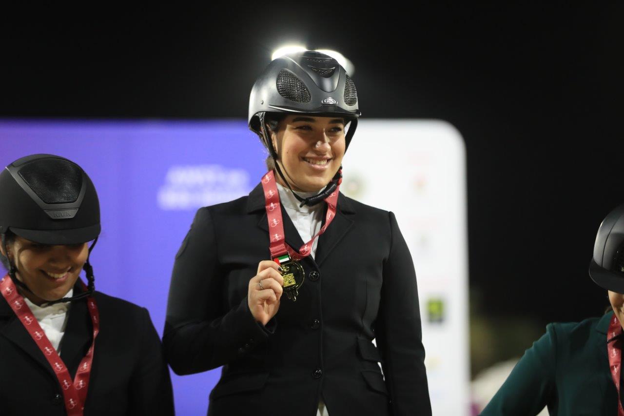 حازت كنة الهاشمي على الميدالية الذهبية الشهر الماضي ضمن منافسة قفز الحواجز في اليوم الافتتاحي للنسخة الخامسة من دورة الألعاب للأندية العربية للسيدات، التي نظّمتها مؤسسة الشارقة لرياضة المرأة حتى تاريخ 12 فبراير. إذ فازت الفارسة كنة الهاشمي بلقب الشوط الترحيبي “كلاس 1” الذي أقيم على ارتفاع حواجز تراوح بين 90 و100 سنتيمتر، وشهدت تنافساً بين 23 فارسة، عرفت 12 منهن كيفية بلوغ شوط التمايز والختامي الذي استطاعت من خلاله كنة الهاشمي على صهوة الجواد “أنجيلينا” أن تقطع مسار الشوط دون أخطاء وتسجّل الزمن الأسرع البالغ 30 ثانية و99 جزء من الثانية وتحسم المركز الأول وتحصد الميدالية الذهبية.