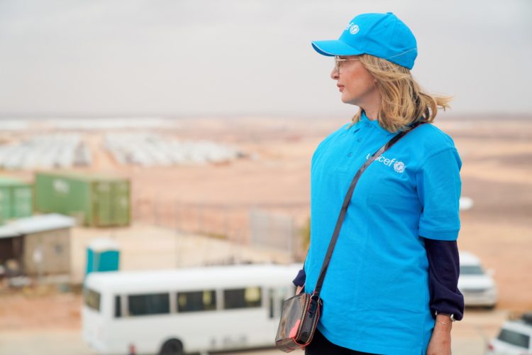 إذ قامت المصممة المبدعة إنجي بزيارة لمخيم اللاجئين السوريين في الأردن في إطار نشاطاتها الهادفة إلى دعم العمل الخيري. وعن الزيارة قالت إنجي “تأثرت كثيراً بسرعة تأقلم هؤلاء الأطفال مع الظروف المحيطة بهم، وأعجبت بالمجهود الذي تبذله منظمة اليونيسف لتؤمّن ذهابهم إلى المدارس مثل بقية الأطفال وتضمن لهم حقهم بالتعليم والعيش بسعادة وأمل”.