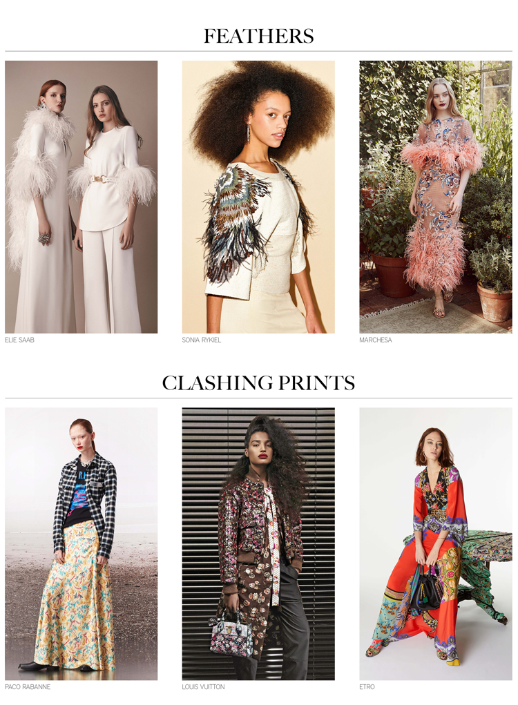 يتميز كل موسم بألوانه واتجاهات الموضة التي ترسم معالمه. وبما أن مجموعات ما قبل الخريف أصبحت أساسية في عالم الموضة، اليك هذه الصيحات التي ستترأس لائحة مشترياتك لهذا الموسم. من الأسود الى الجلد والجينز واللون الذهبي والريش والطبعات وغيرها، الخيارات عديدة والتصاميم ستنال اعجابك.