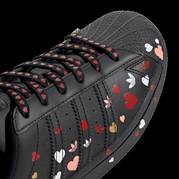 لعاشقة الرياضة في داخلك سترغبين بشراء واحدة من أحذية أديداس الرياضية Originals Superstar الخاصة بالفالنتاين، ستجدينها باللون الأسود مع طبعات جميلة بألوان الأحمر والزهر لأشكال القلوب والشوكولا والورود.