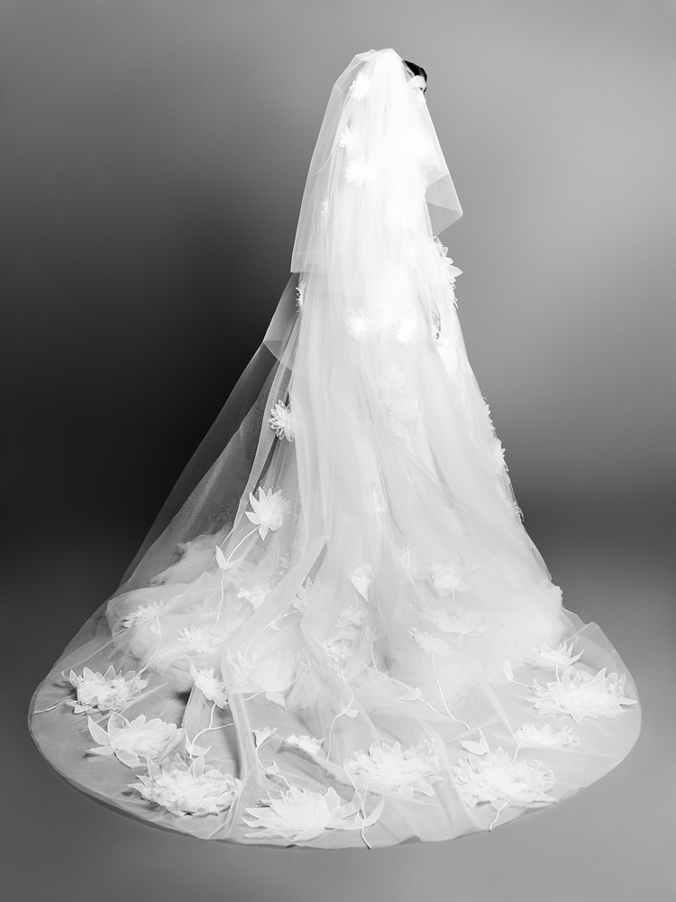النجمة هنا هي مجموعة المصمم زهير مراد لخريف وشتاء 2019. تحلم عروس مراد بفساتين مستوحاة من زهرة اللوتس، التي تعبر عن الحب والجمال والحكمة والنعومة وتشع ايجابية. أقمشة المجموعة مطرزة بدقة، فبعضها مغطى بالتطريزات اللامعة والناعمة بشكل كامل.