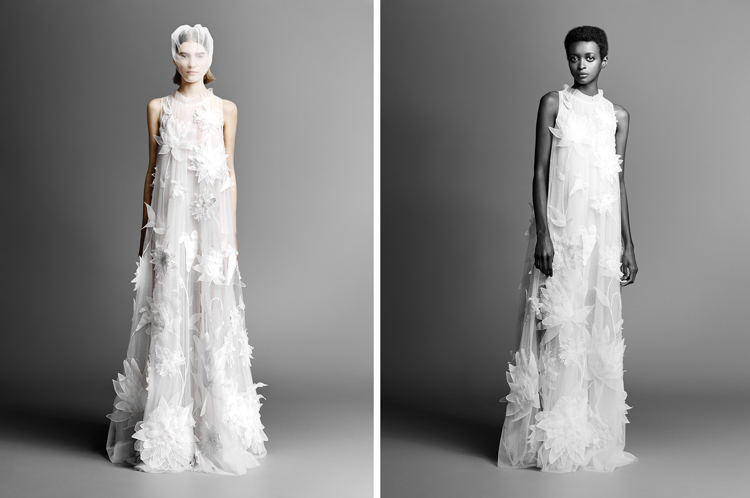 إنّ مجموعة “Viktor&Rolf Mariage” لربيع وصيف 2019 عبارة عن عرض يربط ما بين الشكل الجريء والمذهل. الإبداعات المنحوتة مزيّنة بتطريزات دقيقة وعناصر من توقيع الماركة مثل التول الكلاسيكي، عقد الفراشات الشهيرة، أحجام مرقّعة، وزخرفات الأزهار الأنثوية. جميعها تشكّل مزيجاً، يثمر لدى اقترانه بطبيعة المجموعة التصويرية واقعاً فاخراً في عالم أزياء الزفاف.