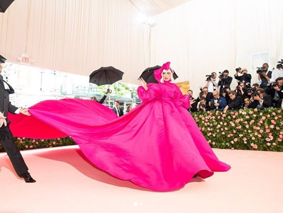 من المعروف عن ليدي غاغا اختيارها الدائم للإطلالات المثيرة للجدل، ولعل حفل Met Gala هو مكانها المفضّل ومساحتها الآمنة للتعبير عن خياراتها الخارجة عن المألوف. تألقت يوم أمس ليدي غاغا بفستان وردي اللون كبير وضخم مع الكثير من القماش الحريري الذي يتبع المغنية، اختارت إطلالتها من تصميم Brandon Maxwell ولكن قامت بتغيير الإطلالة إلى 3 إطلالات أخرى، من بينها فستان أسود كلاسيكي مقطوع الصدر مع تنورة واسعة من العصور الوسطى، وإطلالة أخرة بفستان وردي ضيق، وآخر جريء للغاية بقطعتين باللون الأسود.