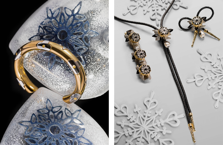 تتميز المجموعة بحيويّتها وتعددها، ويمكن توفير أسلوب معاصر متعدد القطع بإستخدام قطع هذه المجموعة المستوحاة من التراث الإماراتي الحي، من بين قطع المجموعة أحببنا مجموعة Girl Code من الذهب الأصفر المرصّع بحبّات من الأحجار الكريمة وشبه الكريمة الملوّنة التي تضفي الحيوية إلى الإطلالة، إضافة إلى قطع المجوهرات المستوحاة من فن تشكيل الأوراق هندسيّاً، تتجسّد بزهرة على الخاتم أو الأقراط مصنوعة من الذهب الأصفر وتتوفر بالذهب الأبيض والوردي، مع مركز من حجر اللبيس، أو الملكيت أو الفيروز.