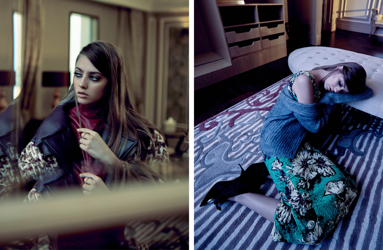 في أكثر الأحيان عندما أكون في غرفة تبديل ملابسي وأنا أجرّب الملابس أحاول ابتكار تصاميم جديدة. أتصفح العديد من المجلات القديمة التي تعود إلى حقبة الثمانينيات والتسعينيات وأوائل الألفين. كما أن نوعية الأقمشة، والأحجار الكريمة والعطور، خاصة زيت الباتشولي، تعتبر مصدر إلهام بالنسبة لي أيضاً.