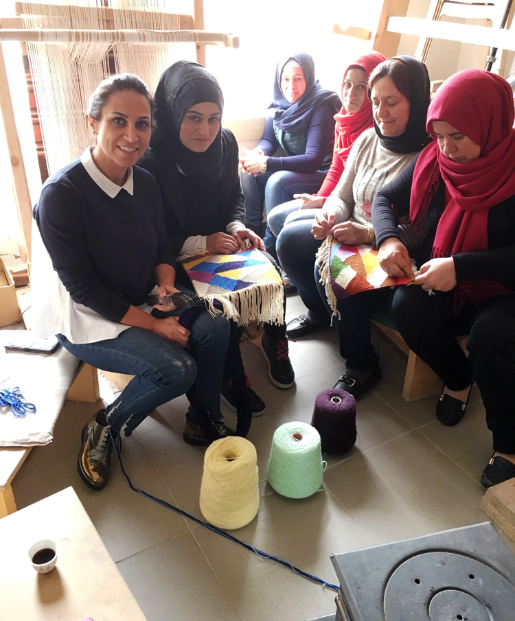 عرسال بلدة لبنانية من قضاء بعلبك، كان العمل مع سيداتها حلم بالنسبة لي. غالباً ما كنت أفكر لماذا علي التوجه الى باكستان وأوزبكستان والهند وإيران لتنفيذ أعمالي اذا كنت أستطيع أن أقوم بالعمل عينه في لبنان. وبما أنني درست عن تمكين المرأة وشؤونها وربما لأنه لم يكن من السهل علي أن أثبت نفسي في عالم السجاد، أحببت أن أعمل وأساعد سيدات عرسال. تعرفت على معلمة تعمل هناك أحبت الفكرة ولكنني لم أستطع أن أعمل معهن الى أن تلقيت اتصالاً من الـ US AID وسألوني اذا ما كنت مهتمة بالتعاون معهم، كان جوابي طبعا ايجابياً وهكذا بدأنا.