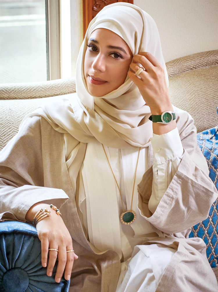 مجموعة كبيرة من الأساور أو الدمالج. أشعر أنه يمكننا ارتداؤها مع معظم الفساتين أو الملابس حتى لو كان الرداء بأكمام جرس كبيرة. إضافة إلى ذلك أختار أقراط كبيرة!