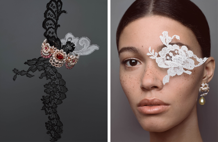 مجموعة Dior Dior Dior للمجوهرات الراقية مستوحاة من مختلف أنواع الدانتيل الموجودة في أرشيف أزياء Christian Dior الراقية. مجوهرات فاخرة أعطت الحياة لهذا النوع الأنيق من النسيج من خلال الأحجار الملونة والحرفية العالية والدقة التي نفذت بها التصاميم الرائعة.