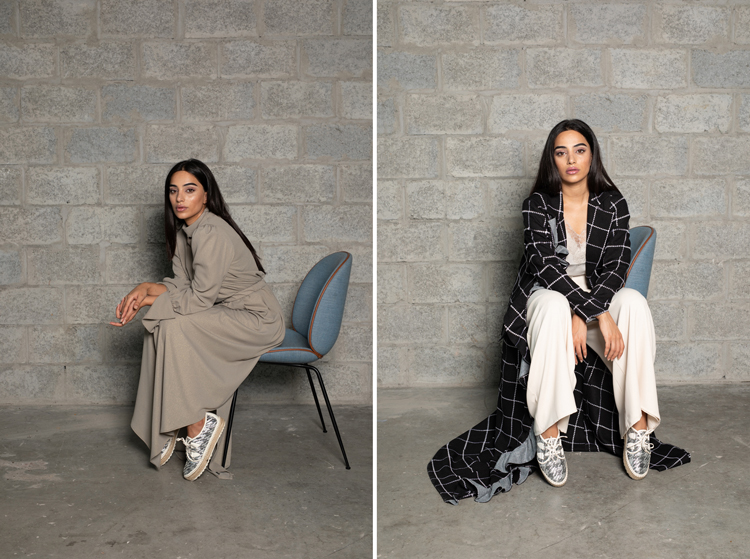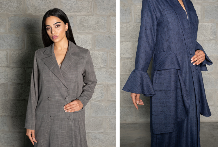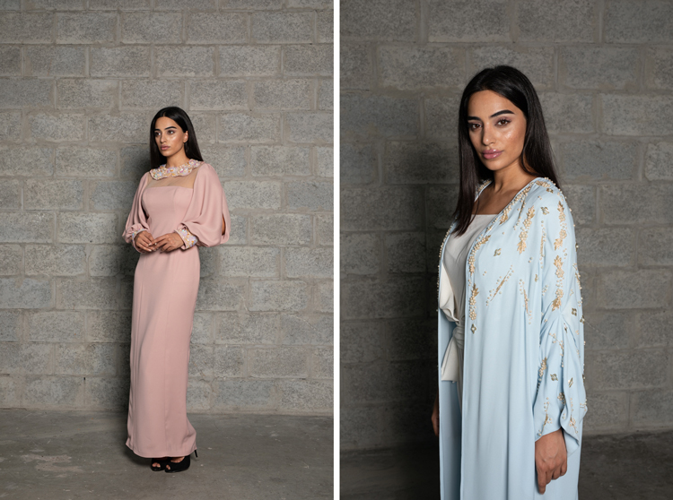 من المصاعب التي واجهتنا، ترجمة التصاميم الموجودة في مخيلتنا وإيصال المعلومة بطريقة صحيحة الى فريق العمل، لنسهل عليهم طريقة التنفيذ كي نحصل في النهاية على القطعة التي نريد. وبما أن علامتنا التجارية شابة جداً فليس من السهل أن تصل تصاميمنا لشريحة واسعة من الناس. أين تقومان بتنفيذ التصاميم وما هي مصادر الأقمشة؟ نقوم بتنفيذ جميع التصاميم في ورشة عملنا في الامارات، والأقمشة التي نستخدمها أيضاً مصدرها محلي.