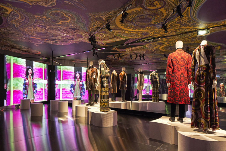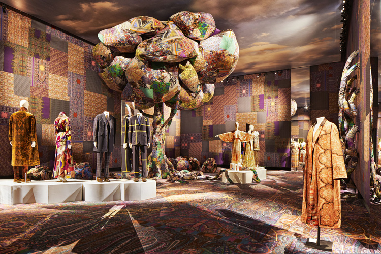 تُقدّم “إيترو” تجربة غامرة، عبارة عن تراكم من الأفكار والعلامات والتجارب التي ترسم معالم الحياة اليومية. لا تولد قطع الملابس والأكسسوارات إلا بعد إرضاء حبّ الاستطلاع والغوص في التصاميم على مستوى المشاعر. إنّها ثمرة البحوث الإنسانية وتطرح رؤية واعية وسبّاقة. تبدأ مغامرتنا مع إنتاج الأقمشة وتتطوّر مع ابتكار ستايل تغلب عليه هوية قوية. الملفت في علامة “إيترو” هو اعتمادها في كل تصاميمها على نقشة “بايزلي”، أو “شجرة الحياة” التي نشأت في بلاد ما بين النهرين وباتت رمزاً للخصوبة وطول العمر. كان من البديهي أن تختار العلامة متحف الثقافات في ميلانو للاحتفال بالذكرى السنوية الخمسين على تأسيسها، إذ تُشاركه الروح ذاتها، المتمثّلة في الترحال والانفتاح على عجائب العالم. يستضيف المتحف معرض Generation Paisley (أي جيل بايزلي) الذي انطلق في 22 سبتمبر 2018 ويستقبل الزوار مجاناً لغاية 14 أكتوبر. يتّسم المعرض بالخيال والدقّة، إذ تُرحّب بالزوار شجرة ضخمة بأغصانها المورقة، فيما يمتدّ مُجسّم أشبه بالنخاع الظهري عبر الغرف الخمس من دون انقطاع، بحيث يتغلّب على الحدود، ويرسم مساراً جميلاً يضمّ 50 إطلالة من مجموعات مختلفة. سينغمس الزوار في أجواء غريبة ومألوفة في نفس الوقت وسط جدران تكسوها الأقمشة واللوحات وانعكاسات المرايا المتعدّدة التي تجعل الغرفة تبدو أكبر، والتأثيرات الرقمية وثلاثية الأبعاد. الغرفة أشبه بمِشكال عاطفي يُظهر أنّ العنصر الثقافي بالنسبة إلى “إيترو” هو ركيزتها الأساسية وأنّ الموضة تكون بمخاطبة الأحاسيس والمحتوى وليس الشكل فحسب.
