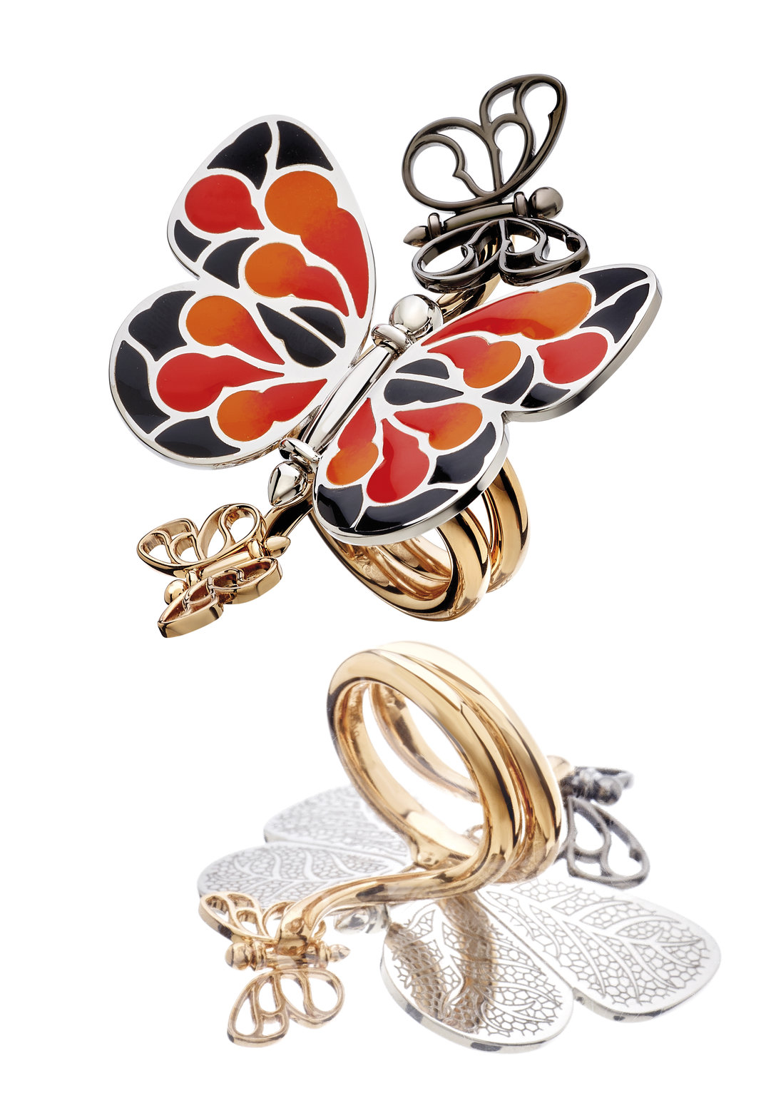 حيث تم إبداع هذه المجموعة الخلابة بأسلوب فريد يحفل بهياكل ذهبية من الذهب عيار 18 قيراط ، وتفاصيل من الألماس والخزف الملّون، وتتضمّن أقراط أذن وخواتم وقلائد تتميز بحضور جريء، وذلك وفق إصدارات مشرقة بالذهب الوردي والأصفر والأبيض.