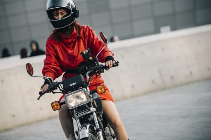 أسلوب سائقات الدراجات النارية: بكل حريتهن تختار الأنيقات إطلالات مريحة ولكن قويّة المظهر، تناسب قيادة الدراجة حتى ولو كانت تحت المطر المنهمر بغزارة.. تألقت السيدات بسترات سوداء اللون مصنوعة من الجلد اللامع أو معاطف قصيرة بألوان قويّة، مثل اللون الأحمر. بينما رأينا بعضهن يتزيّن بالوشوم خاصة في منطقة الرقبة والوجه.