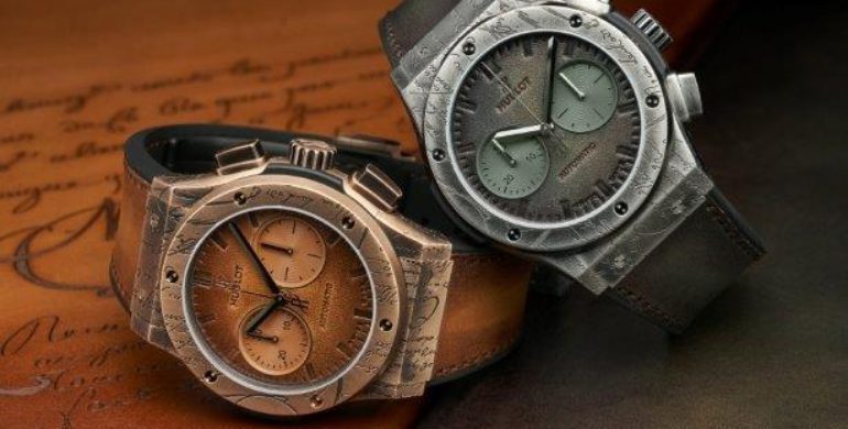 ساعات أنيقة بعلب تروي الحكايات! علبة ساعة هوبلو تحمل نقش SCRITTO الخاص بيرلوتي