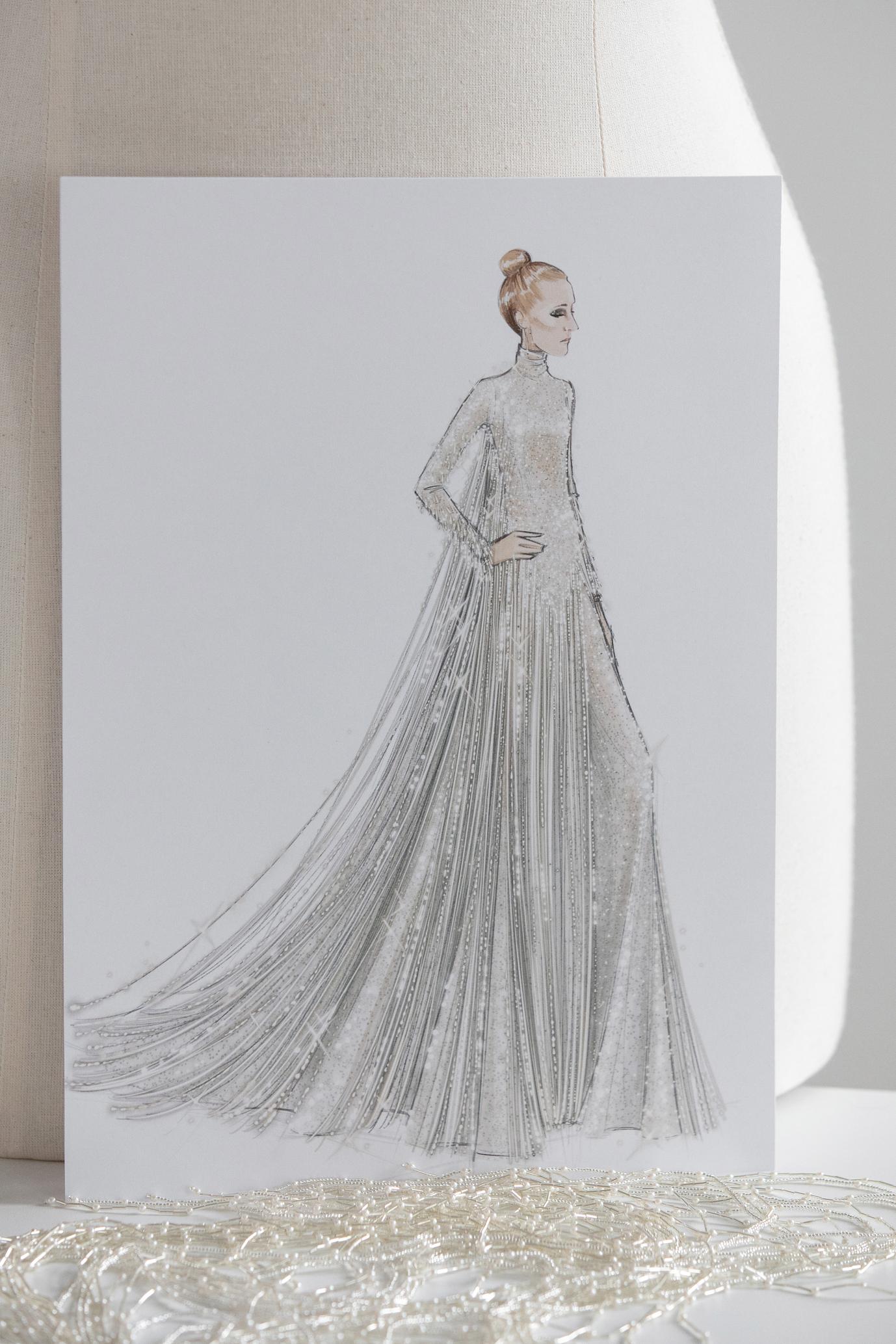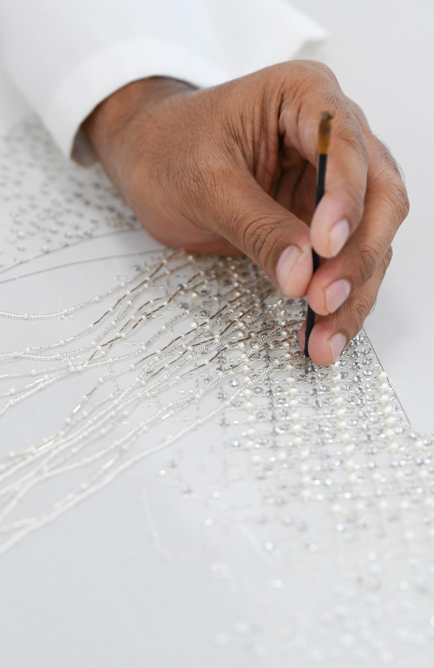 The exceptional design was entirely made-to-measure requiring over a thousand hours of work and perpetuating the prodigious embroidery savoir-faire of the House of Dior.