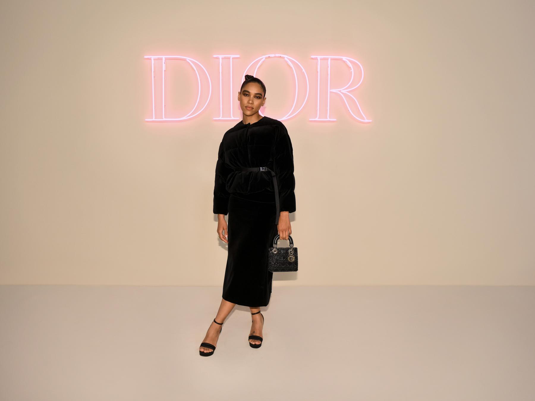 Alexandra Shipp wore a Dior Pre Fall 2024 black wool dress. She also wore a Dior belt, bag and shoes.