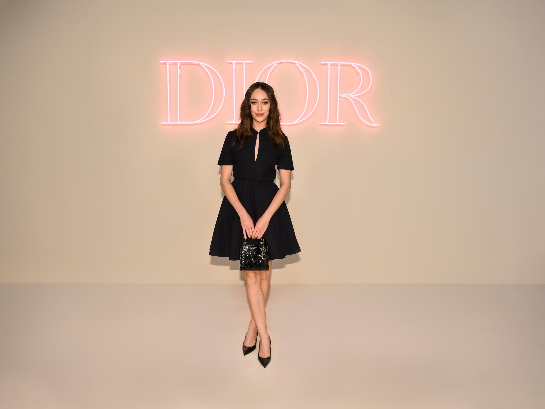 Alycia Debnam-Carey wore a Dior Pre Fall 2024 black silk dress. She also wore a Dior bag and shoes.