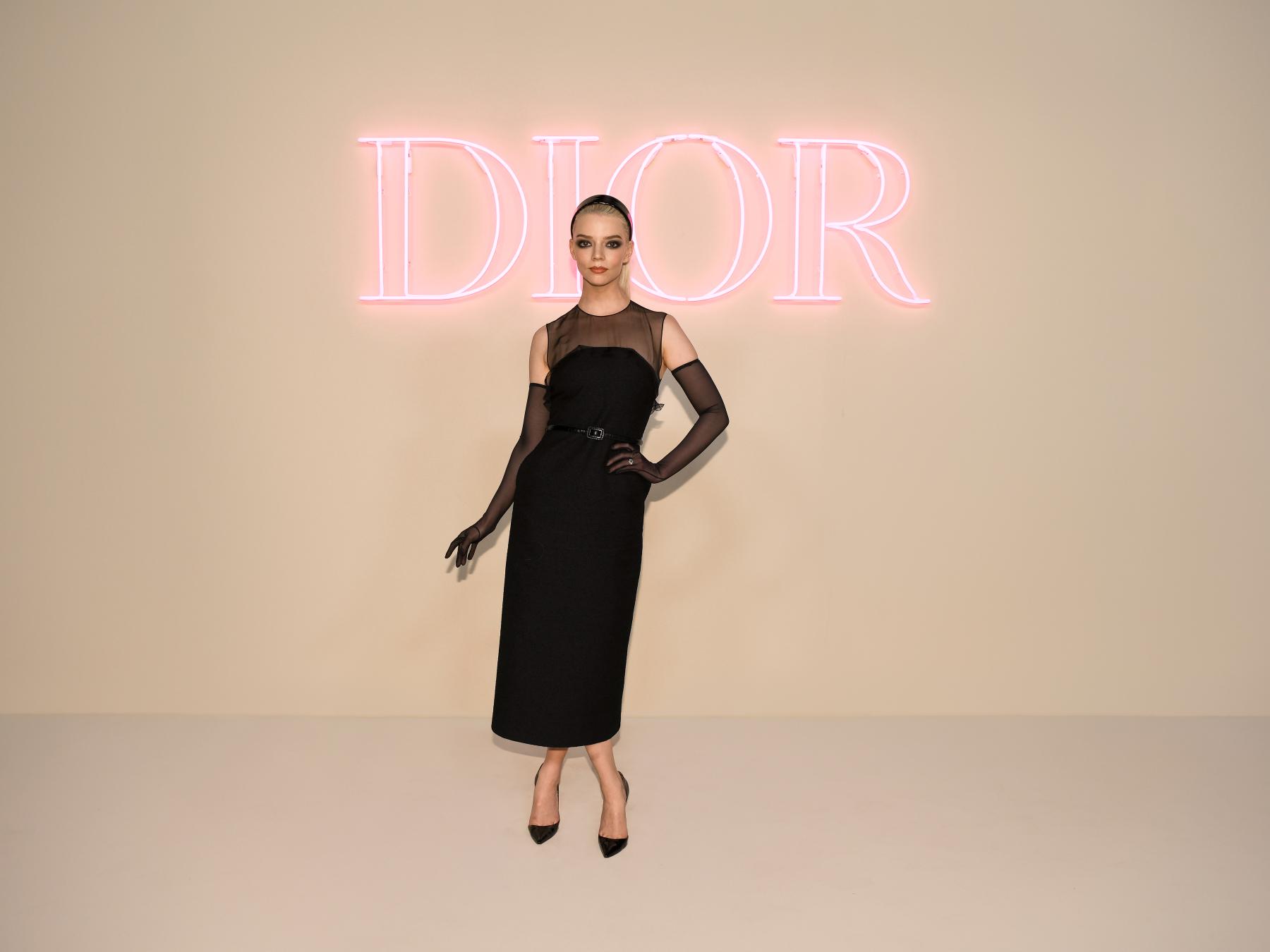 Anya Taylor-Joy wore a Dior Pre Fall 2024 black silk dress with a belt.