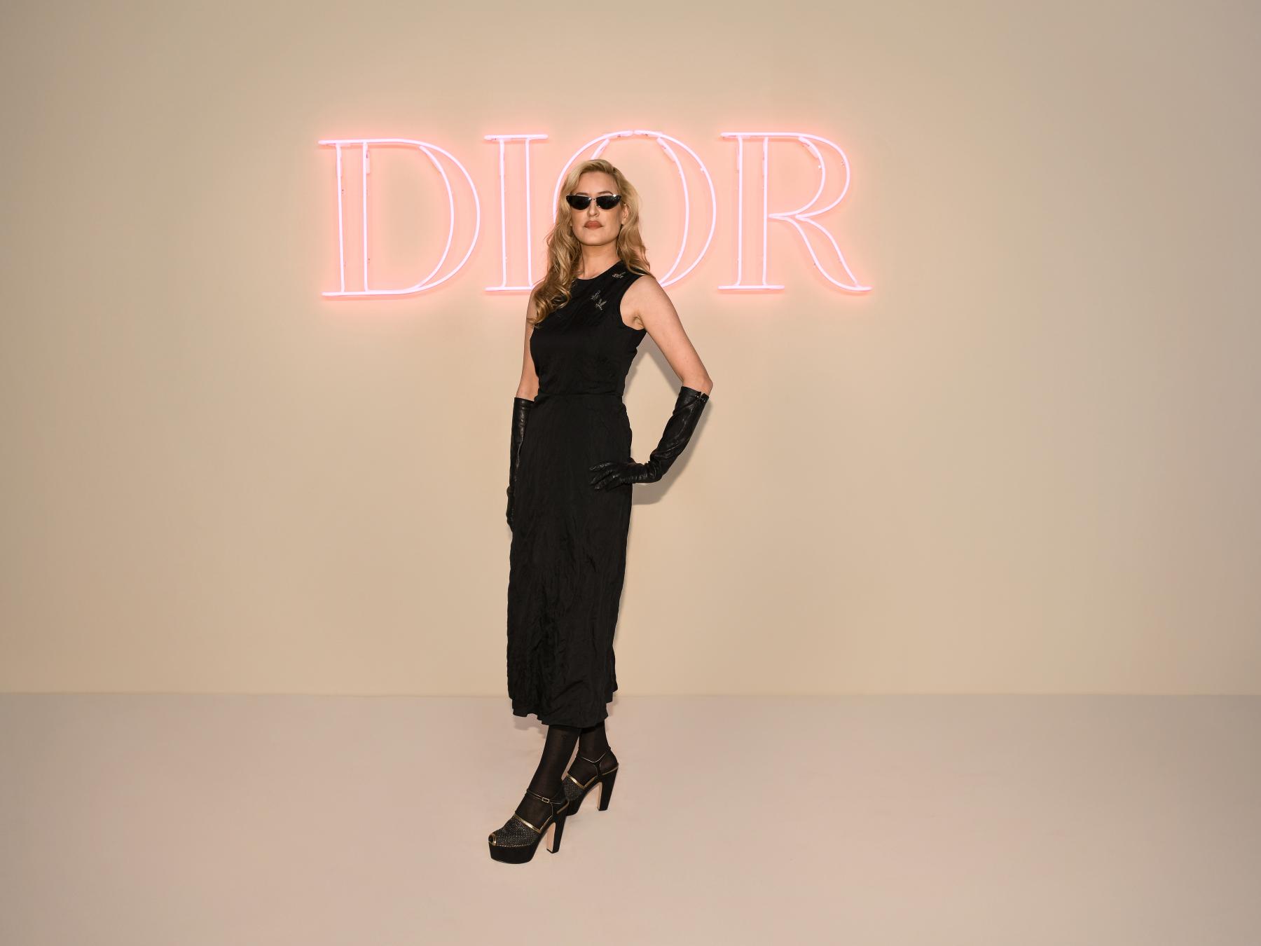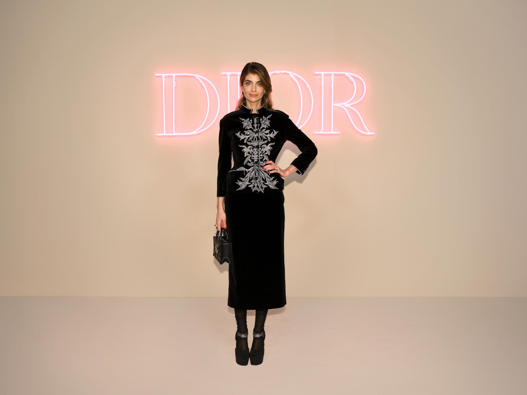 Violette d’Urso wore a Dior Spring-Summer 2024 black wool and silk jacket over a black silk dress. She also wore a Dior bag and shoes.