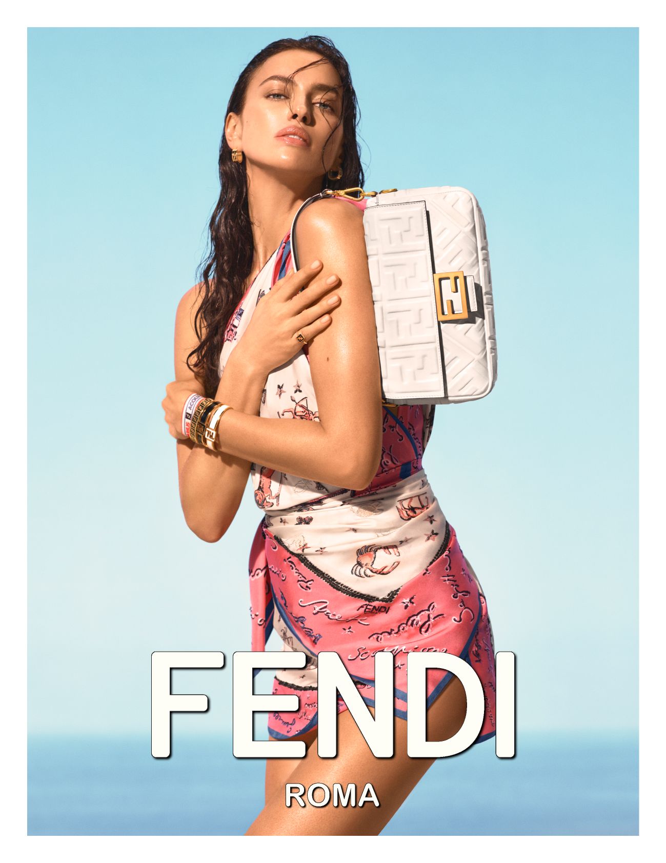 Fronting the campaign is international supermodel Irena Shayk, shot by Steven Maisel on a sunshine drenched picturesque summer set. There is, of course, FENDI finesse to all details as well. Including beach umbrellas and mats.