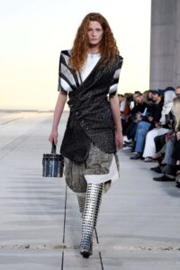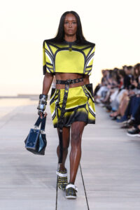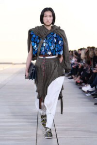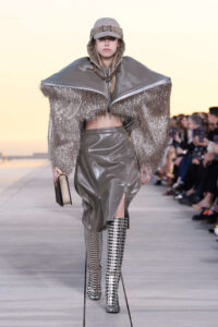 The collection was illuminated by the sun setting in the distance, as warm hues brought life to the iconic location. This was a strategically planned addition to the evening from Ghesquière who saw the sun as a “guest of honour” to this collection. “The heat plays an active part in the evolution of this wardrobe where changes in temperature set a stylistic tempo,” the show notes read. “The unique light of the West Coast creates prisms on clothes full of reflections.”