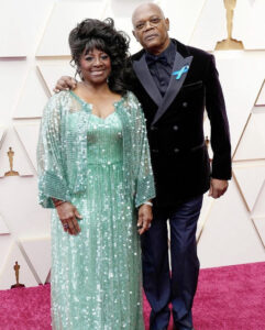 Samuel L. Jackson wearing Giorgio Armani with wife LaTanya Richardson Jackson