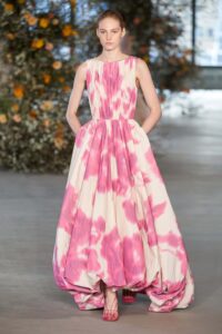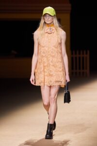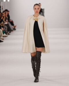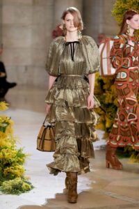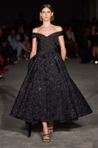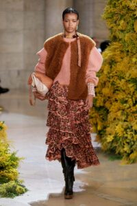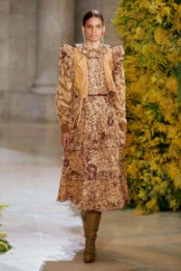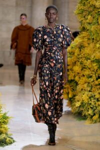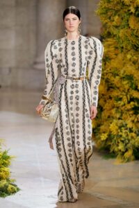 Brandon Maxwell’s Fall 2022 show was dedicated to his grandmother who is now suffering from Alzheimer’s. The designer highlighted with the collection the influence that his grandmother has had on his life. His choice of fabrics and motifs reflected those that remind him of home and this very personal collection was his way of combining the past and the present.