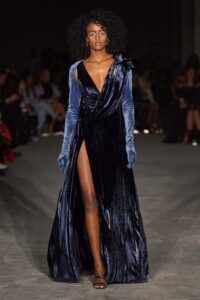 Christian Siriano wanted the world to know that New York Fashion Week is back so he decided to stage his Fall 2022 show at the iconic location of The Empire State Building. The collection revolved around the colour blue with varying shades and tones of the primary colour making up the offering. Models of all body shapes and styles reaffirmed the designer’s commitment to inclusivity.