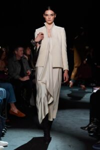 The collection which was quite fittingly titled “Signs of Light”, saw Armani return to the signs that identify his style. Softness was expressed through fluid and elongated silhouettes, while precision and a sense of elegance came from the sharp cuts and understated detailing.