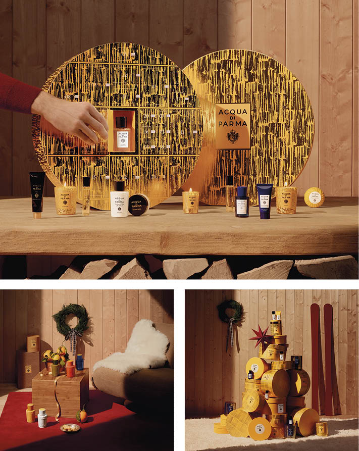 Acqua di Parma’s Art of Living collection also expands with two standout creations. The Alpine Holiday Advent Calendar turns the Maison’s signature hatbox into an object of quiet luxury, handcrafted in white bouclé and calfskin, while the Alpine Holiday Chess Set reimagines a classic game through fine Italian woodworking, complete with lacquered pieces and hidden fragrance vials. The Maison also introduces new iterations of its sculptural Chapeau! candles, each one crowned with a hat-like ceramic lid and infused with exclusive seasonal scents inspired by alpine destinations.